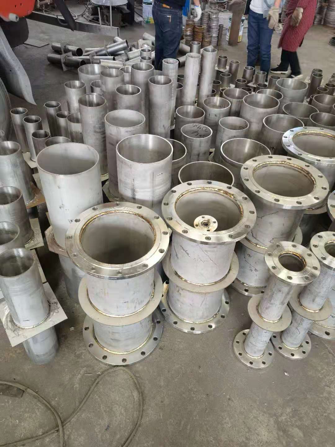 5.根據(jù)02S404防水套管圖集,安裝和使用不銹鋼柔性防水套管時,頂法蘭壓板為裸墻;炷翂仓姆浪坠荛L度為頂壓板,其余三個止水翼環(huán)之間的間距不包括上下翼環(huán)的厚度,即中間焊接管的長度。